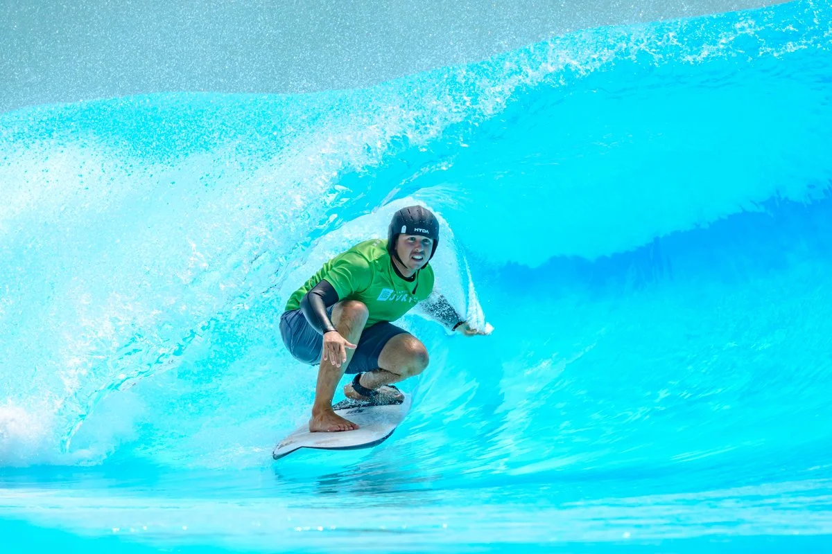 The Turns Surf Pack is bookable in our Intermediate through Expert turns setting, perfect for an after work surf or progressing that backside snap.